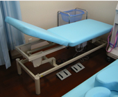 | ○適応 移動、動作による痛みなどがある患者様に、より自然に横になって頂けます。 また、背上げ角度(0°~80°)を調節することで、腰椎の持続伸展角度を細かく調節することが可能です。(マッケンジー法で使用) |